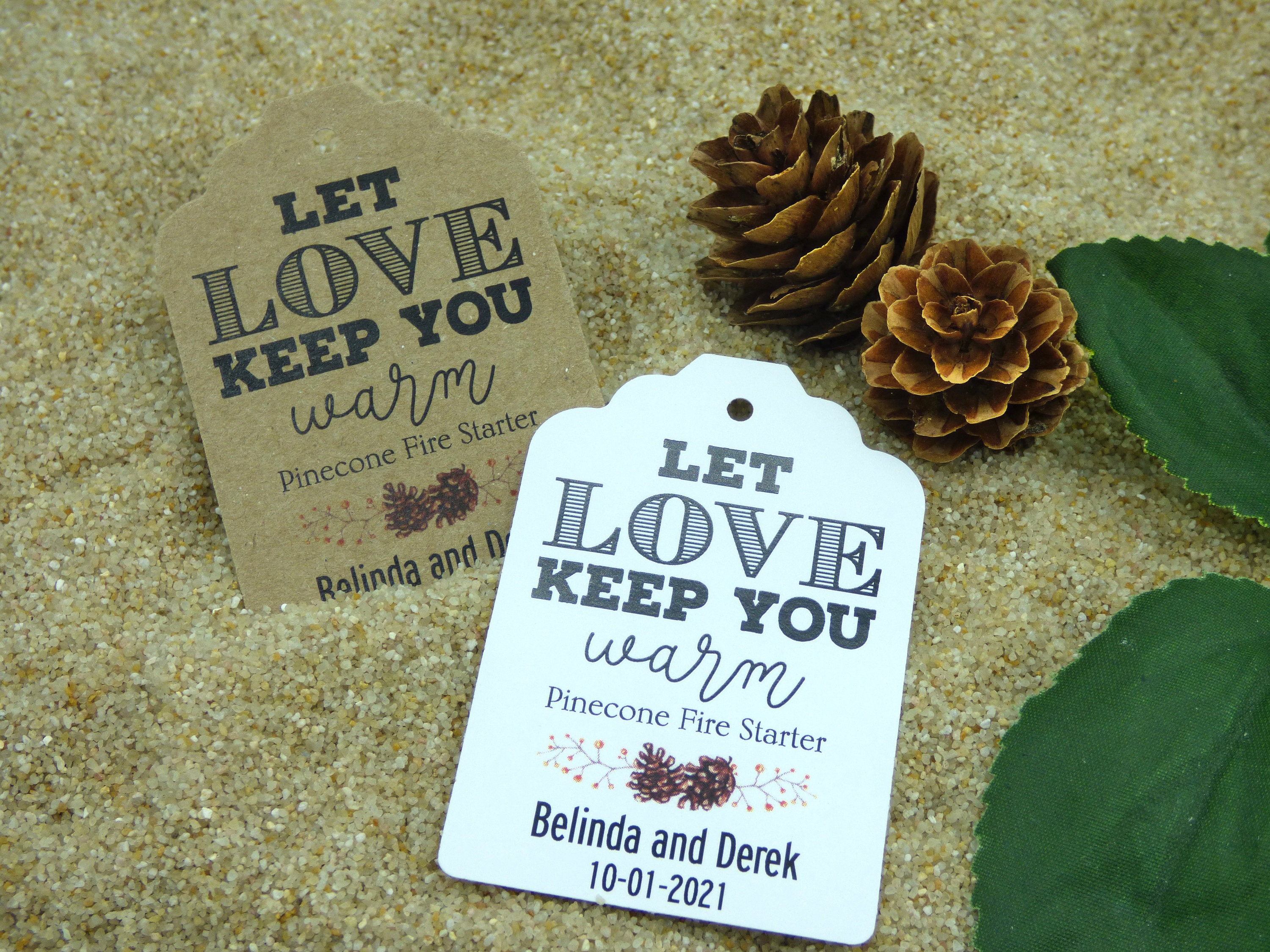 Let Love Keep You Warm Pinecone Fire Starter Favor Tag Etsy